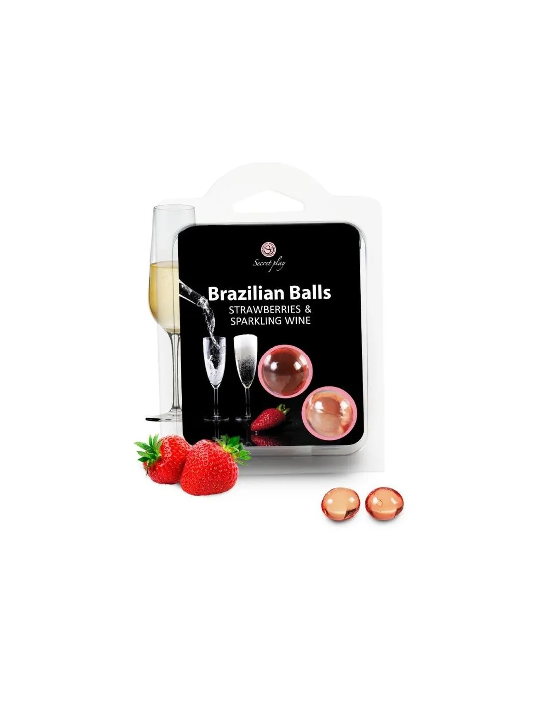 Lubricante Monodosis. Al contacto con el calor del cuerpo, la bola se disuelve en poco tiempo, liberando el lubricante con sabor a fresas con cava que contienen. 2 bolas brasileñas con lubricante con sabor a fresas con cava ideal para masajes o lubricante.