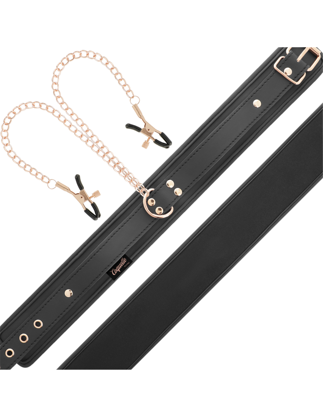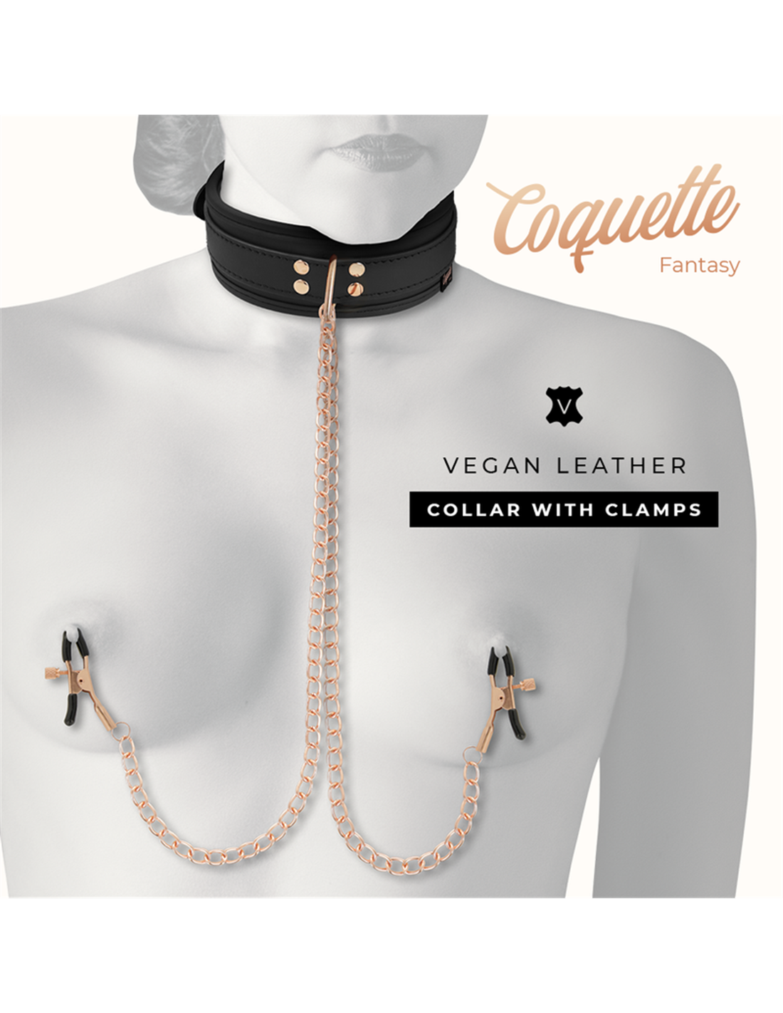 COQUETTE FANTASY collar de cuero vegano con pinza para pezones unido por cadena metal ( Incluida)