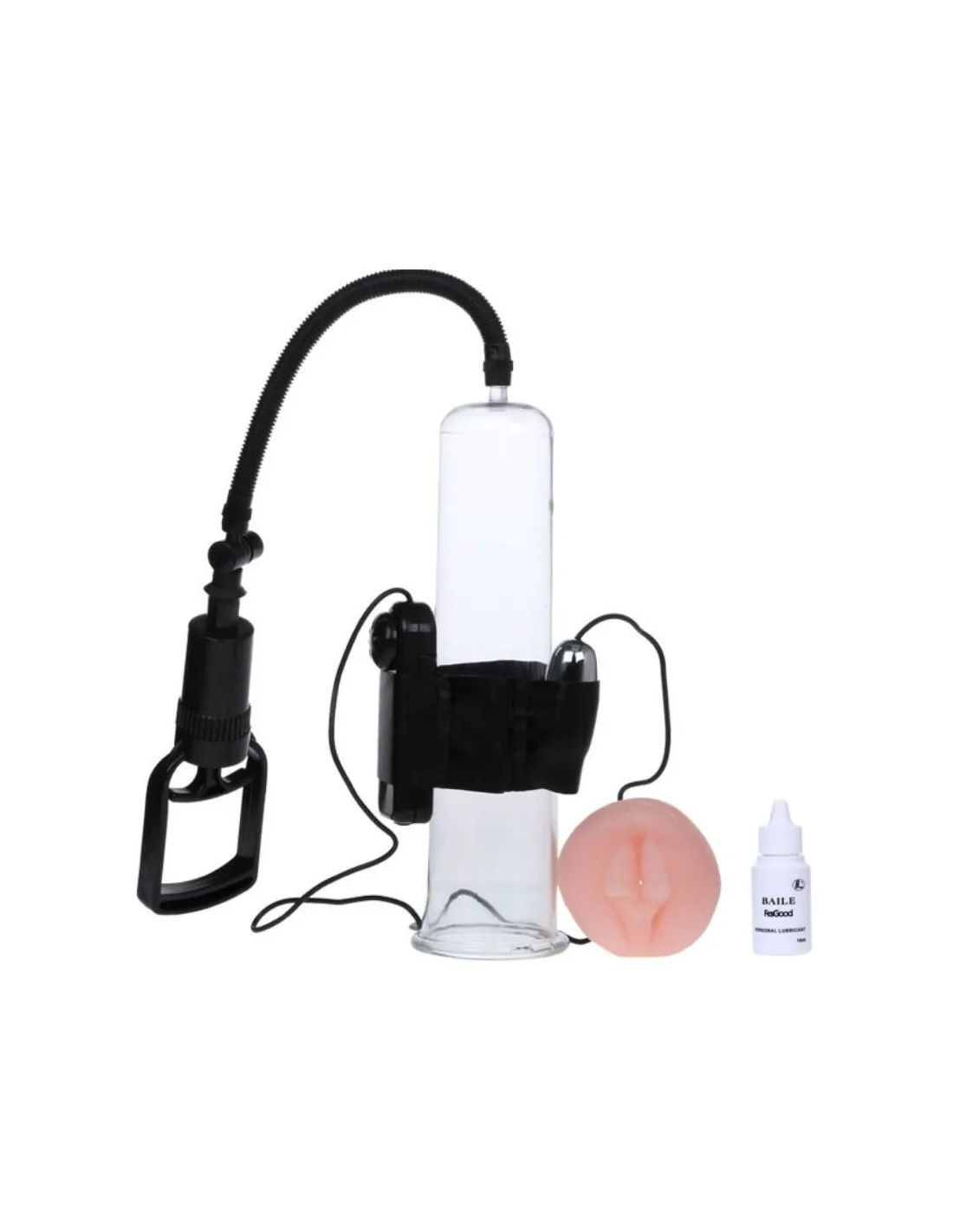 Asegúrate unas potentes erecciones con esta exclusiva bomba de erección con inflador manual y vibración. En el tubo transparente va incluido una bala vibradora regulable con mando para que elijas la vibración que desees. Además, tiene un peculiar orificio de entrada ¡con forma de vagina! Placer y funcionalidad van de la mano con esta increible bomba de erección