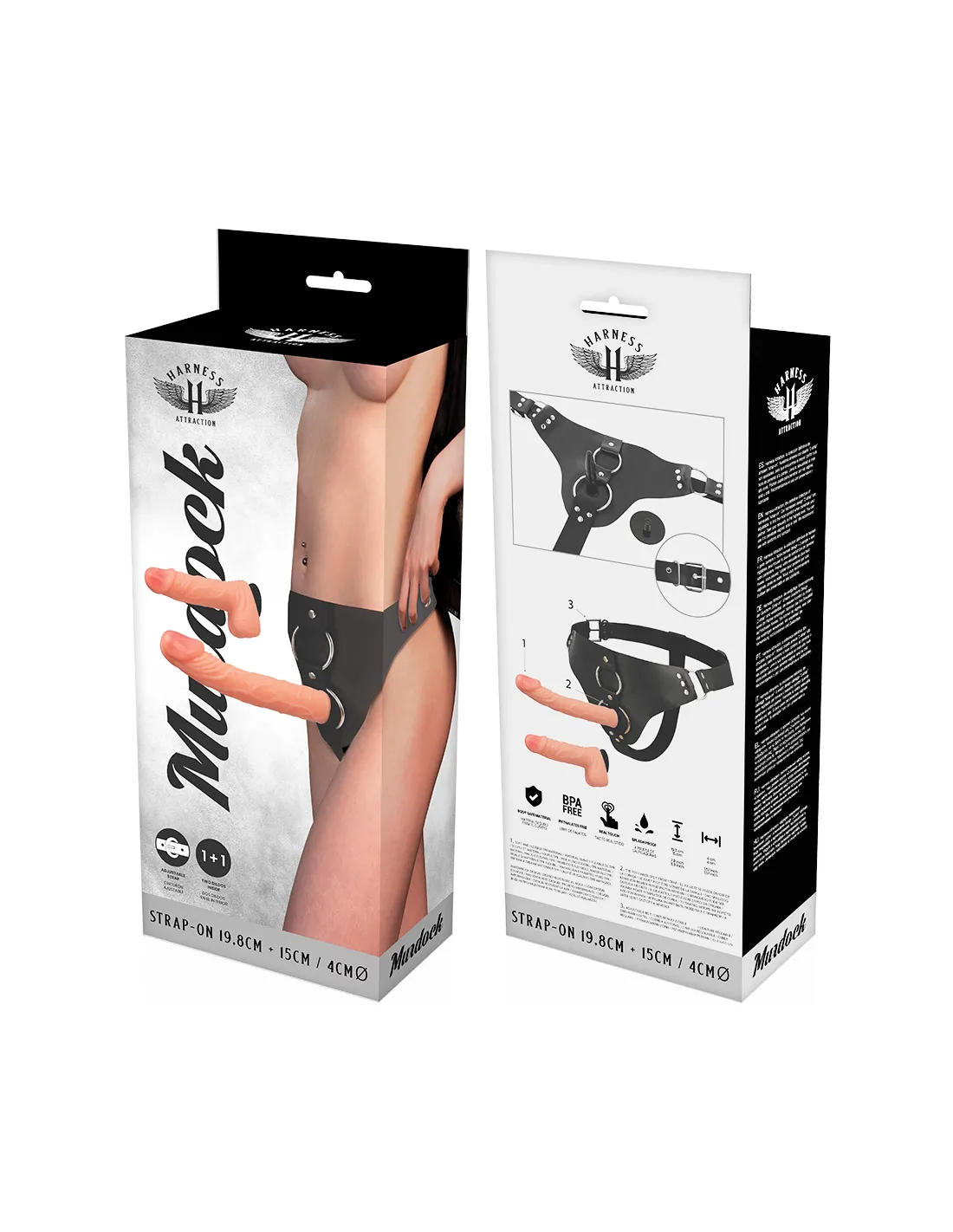 Este arnés de Harness Attraction está dotado de dos penes realísticos intercambiables, con unas formas muy bien diseñadas para mejorar el placer en las relaciones.
