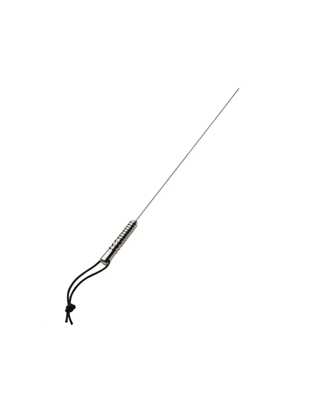 Toda la longitud de esta varilla está construida de acero inoxidable brillante. Mide solo 2.3mm pulgadas de ancho, el metal delgado es lo suficientemente flexible para un buen resorte, pero lo suficientemente grueso para una picadura exquisita.