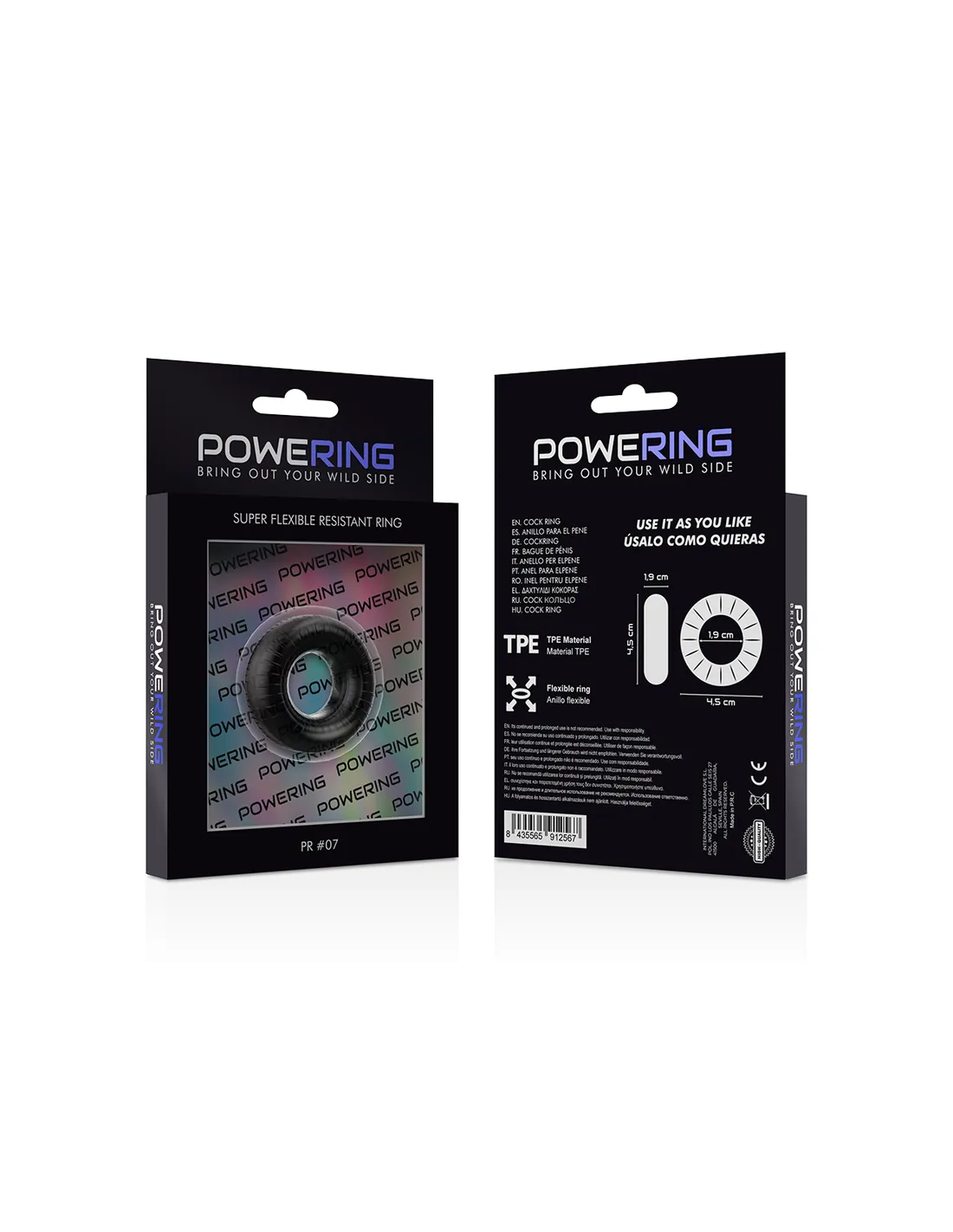 Powering Super Flexible Y Resistente Anillo Pene 4.5Cm Pr07 Negro