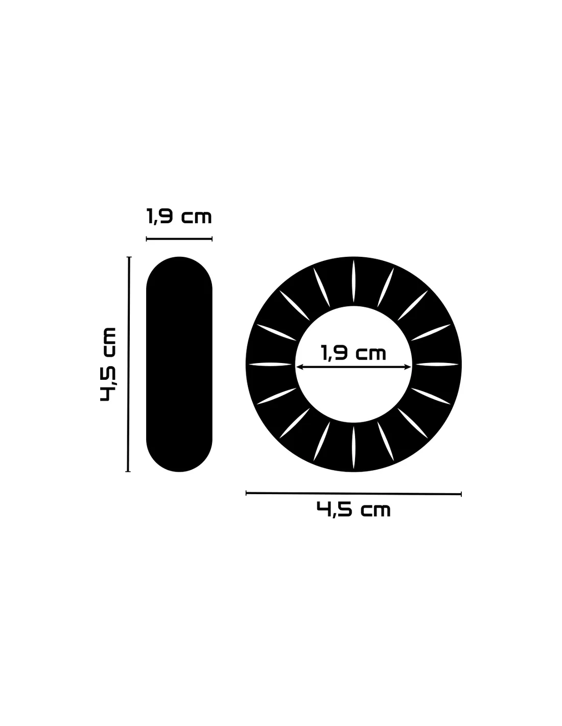 - Diámetro del anillo exterior 4.5 cm (sin estirar)