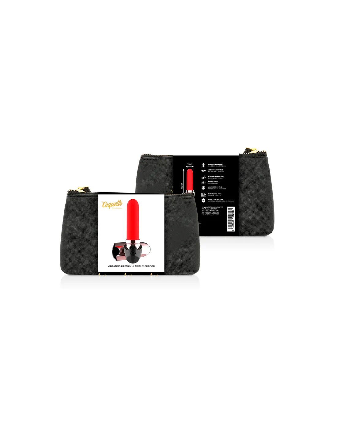 Esta barra de labios vibradora es un compañero de viaje de estilo único: un objeto elegante y simple, siempre listo para complacerte sin previo aviso. Pequeño, ligero, con su atractivo pintalabios. Es un vibrador discreto y moderno para llevar siempre contigo y disfrutar en cualquier momento. Como todos los objetos de placer COQUETTE, esta barra de labios vibrador está preparada para brindar una intensa alegría física y una absoluta tranquilidad en cualquier situación y bajo cualquier circunstancia.