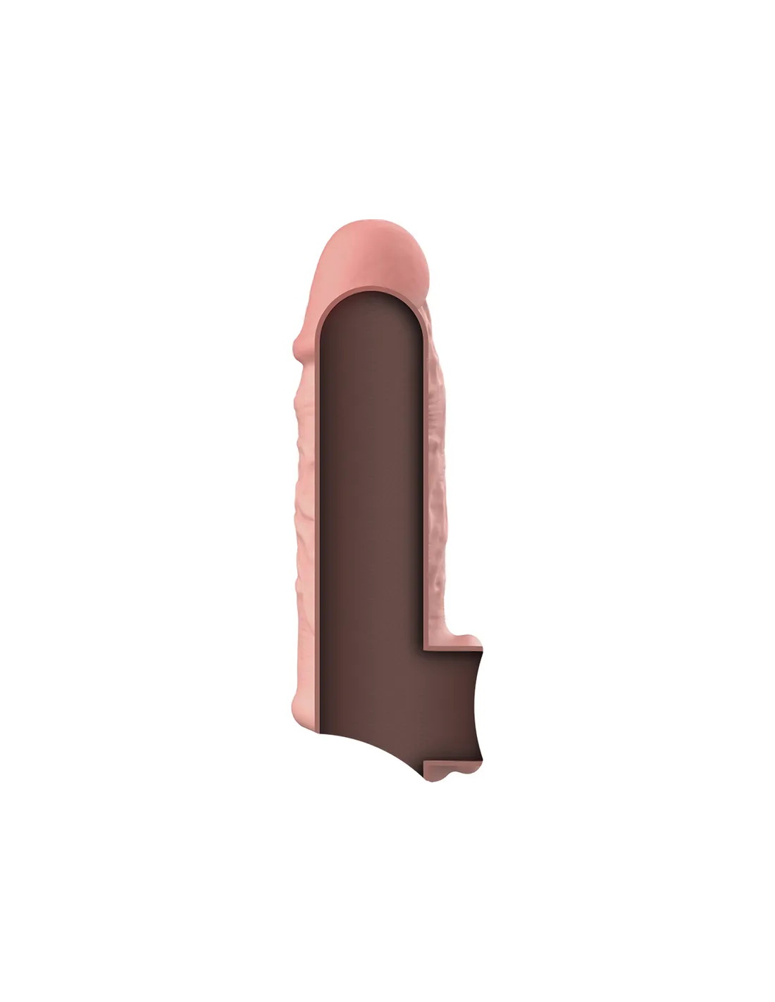 ¡Desliza la manga sobre tu erección y satisface todos sus deseos con tu nuevo tamaño aún más grueso! El material súper suave fabricado 100% en silicona médica, queda como una segunda piel o incluso mejor!