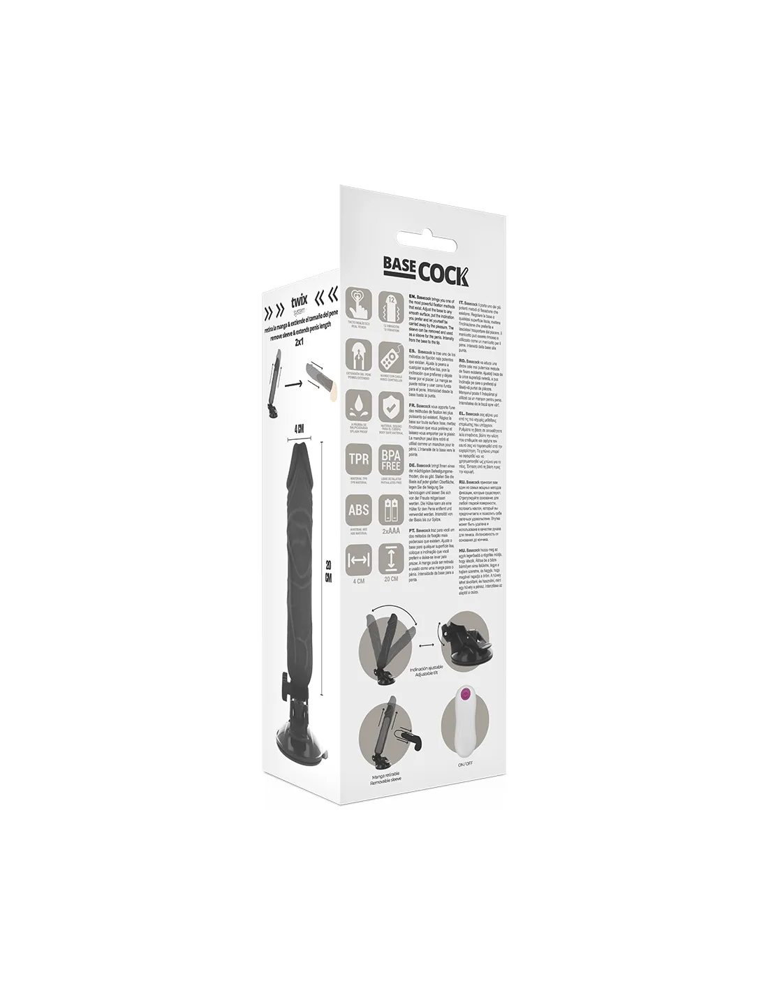 Basecock Realistic Vibrador Control Remoto Negro 20Cm