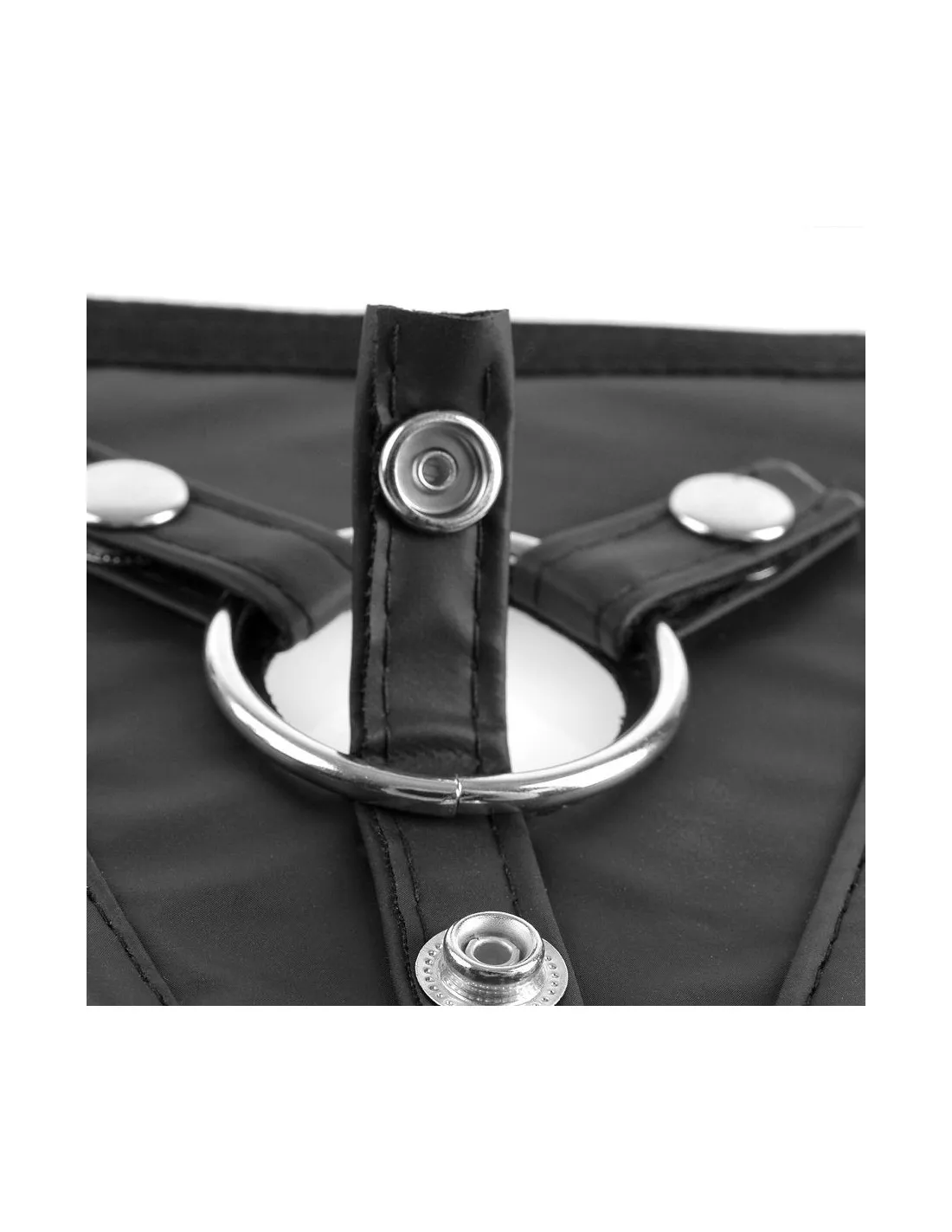 Diseñado para soportar juegos fetichistas extremos, este arnés cuenta con cintas ajustables y una anilla de silicona elástica en la junta tórica.