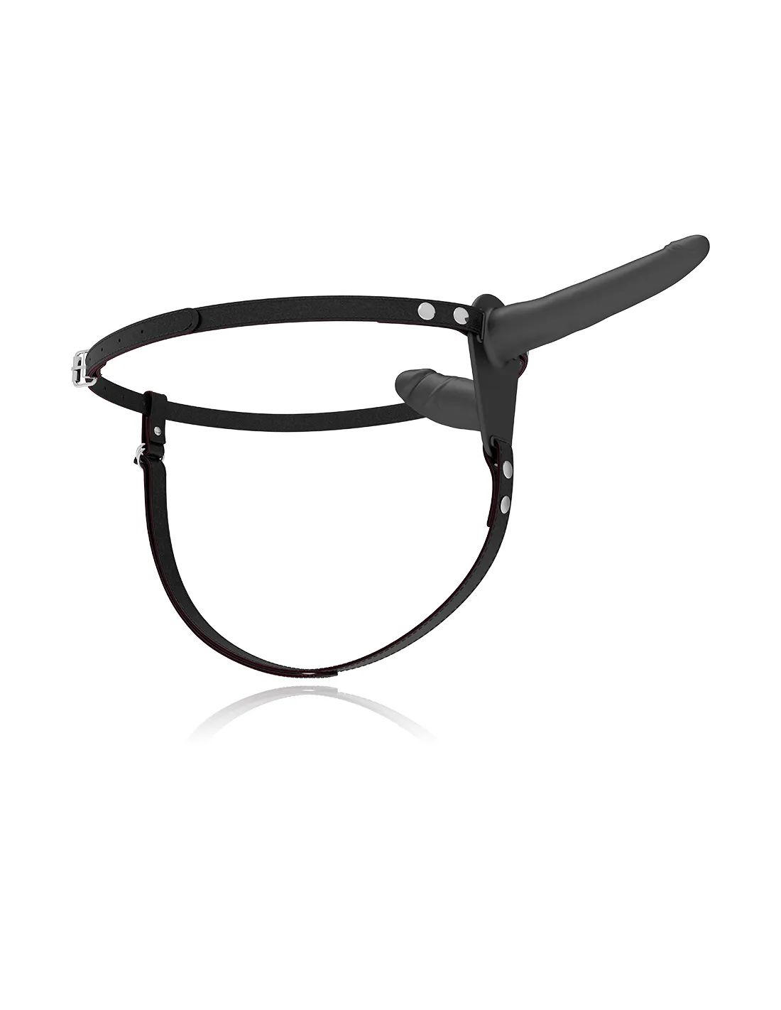 Arnés doble penetración ajustable a cualquier talla de cadera, incluso las más grandes. El dildo está fabricado en silicona de primera calidad.