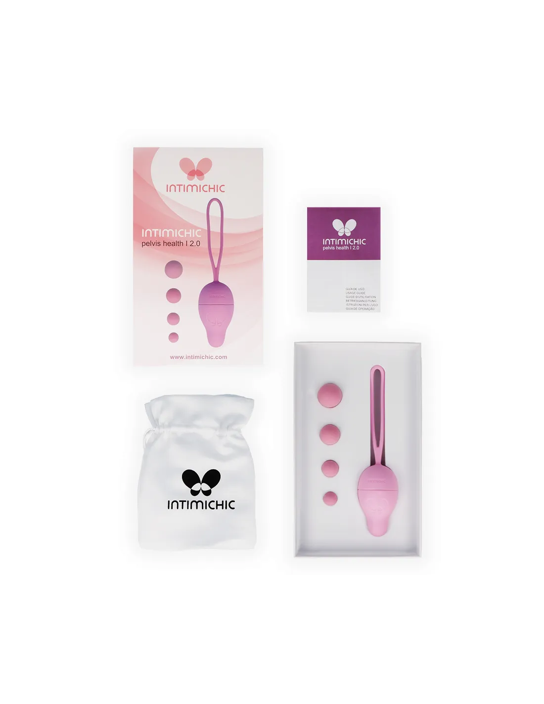 Intimichic Pelvis Health I 2.0 ; Ofrece un tratamiento totalmente natural basado en la realización de ejercicios de Kegel, desarrollados por el Dr. Arnold Kegel, son una serie de contracciones y relajaciones vaginales que fortalecen el músculo Pubococcígeo (PC) y el grupo de músculos del suelo pélvico mediante el aumento gradual de pesos.