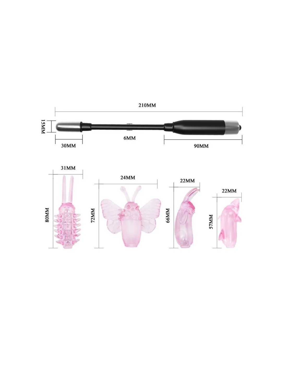 Conecta uno de los 4 cabezales al vibrador de varilla flexible y prueba las múltiples velocidades de vibración para obtener una estimulación intensa y precisa. Con una cabeza separada y un rodillo de masaje ideal para la estimulación del clítoris, el punto G y la próstata, todos los accesorios son lo suficientemente versátiles para ser utilizados como lo desees. Sus 10cm de largo son insertables, lo que facilita su uso y el cuello es flexible para un posicionamiento preciso.