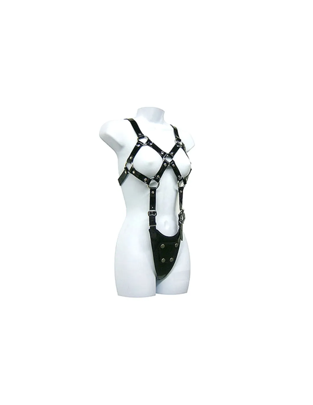 Practica el BDSM, con este Arnes leather para mujer, completamente enlazado de arriba abajo y 100% ajustable.