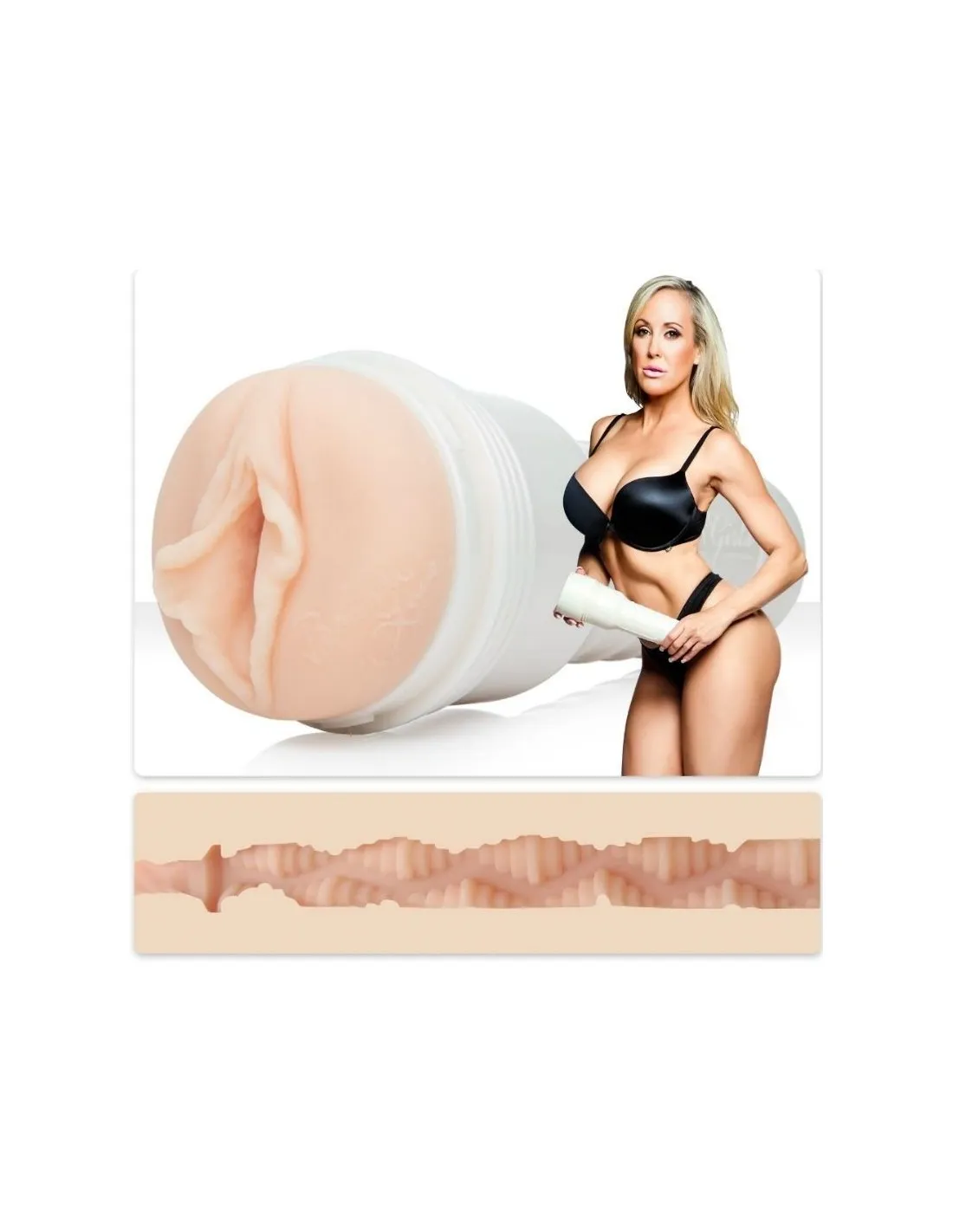 Por dentro, las mangas están hechas de un material realístico, es como si fuera piel de verdad, adaptándose a la temperatura de tu cuerpo, lo que le porporcionará mucho mas realismo. Su diseño es espectacular tanto por dentro como por fuera. Su manga es una réplica exacta de la vagina de esta actriz, lo que lo convierte en un pieza de placer única y super exclusiva.
