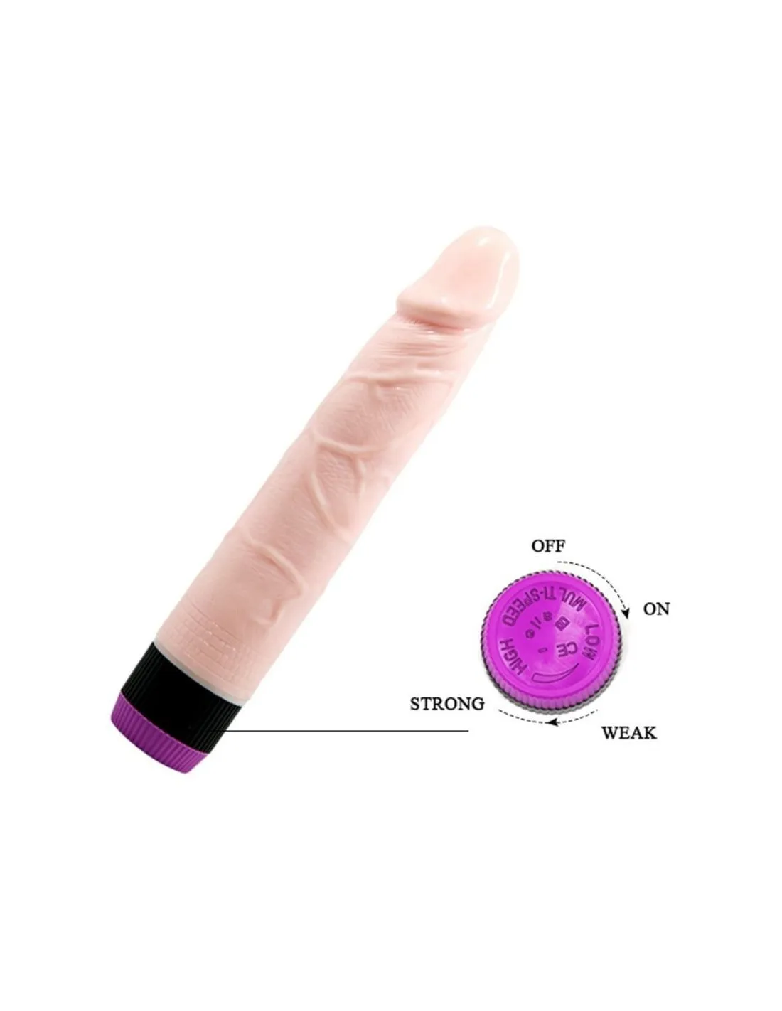 Este super juguete es un vibrador con una textura super suave y vibraciones increiblemente potentes que te mantendrán activa toda la noche. Su diseño ultrarealístico con venas marcadas y glande perfecto más sus potentes vibraciones son pura delicia, además son fácil de controlar con su dial de la base.