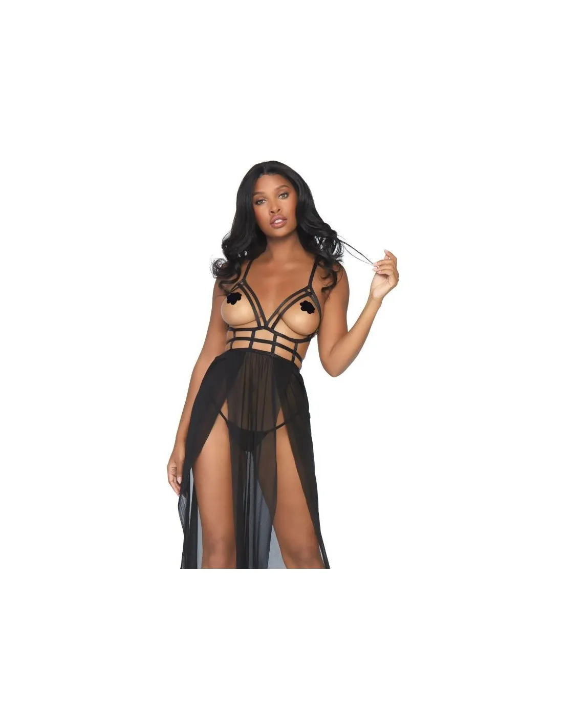 Falda de liga en encaje y red con gargantilla de encaje, medias a juego y top de bikini de red fabricado por la prestigiosa marca de lencería Leg Avenue. Con Leg Avenue reforzarás tu feminidad y obtendrás ese toque justo de seducción, sensualidad y elegancia.