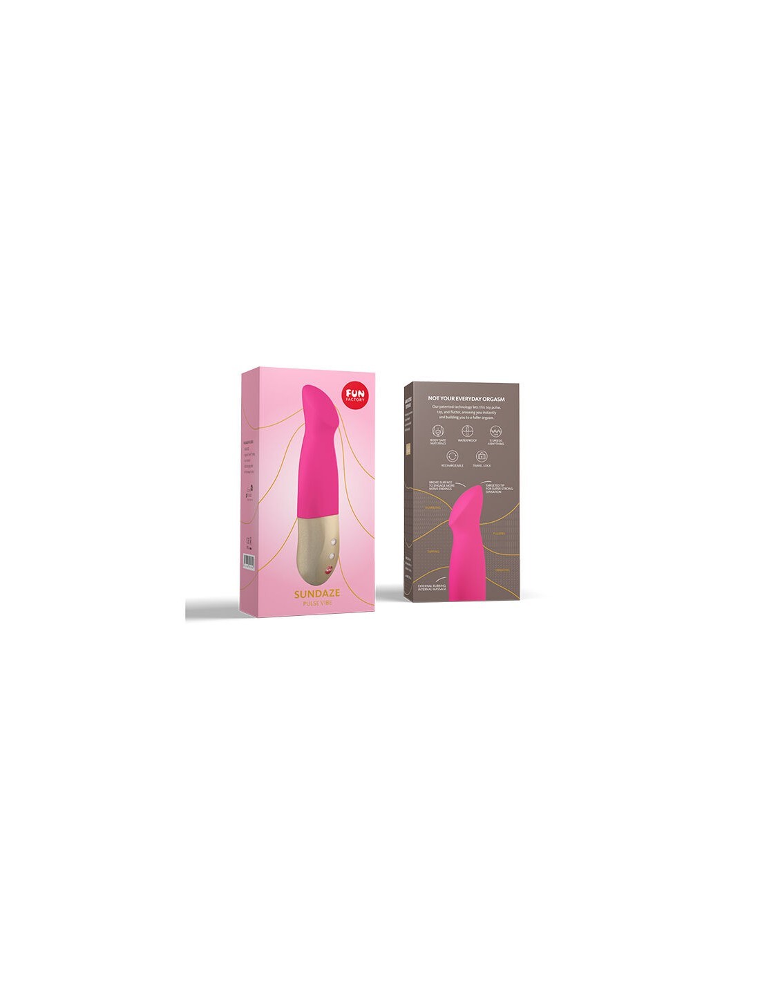 SUNDAZE es una innovación ingeniosa y una verdadera novedad de juguete. Nuestra nueva tecnología Pulse Vibe ofrece un espectro de sensaciones que estimulan el cuerpo de formas inesperadas. Con su gama de sensaciones de golpeteo, vibración y pulsación, SUNDAZE conecta las terminaciones nerviosas que otros vibradores no pueden y despierta el flujo sanguíneo, para una excitación instantánea. La variedad de sensaciones invita a las personas a pasar tiempo explorando, lo que lleva a orgasmos más completos sin peligro de habituación. En pocas palabras: SUNDAZE es esa tranquila cita para jugar los domingos por la tarde. No hay agendas, solo puro placer y descubrimiento.