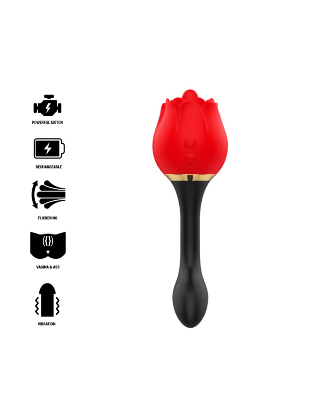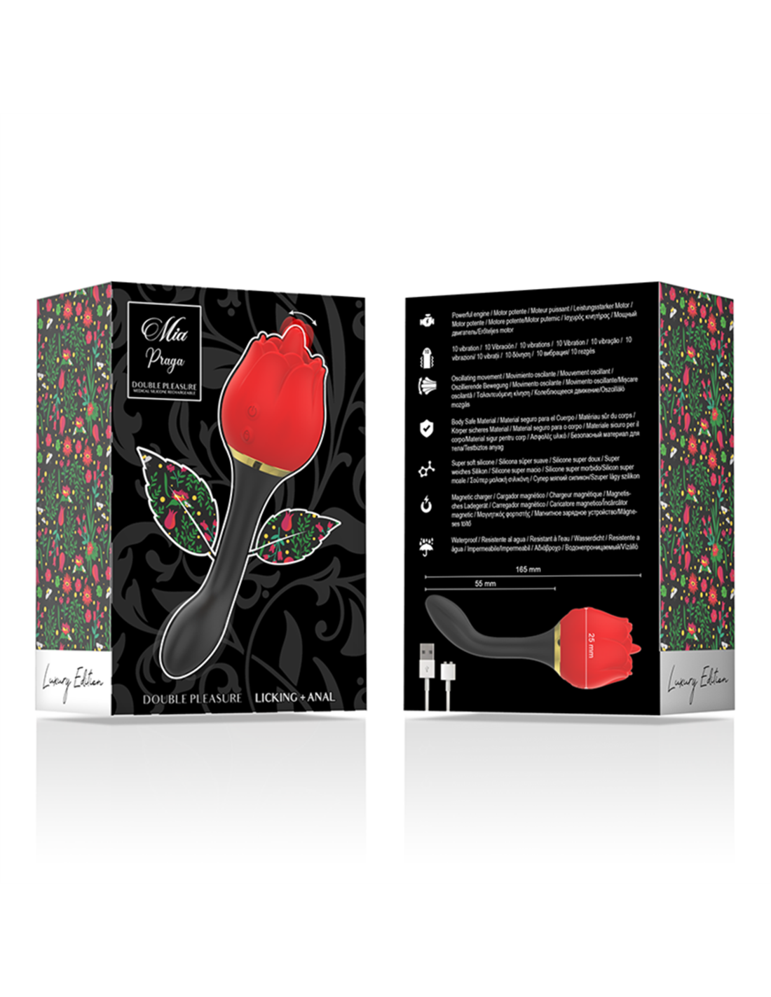 Formas de jugar; Coloque la rosa de silicona de forma segura en la palma de su mano. Coloque MIA PRAGA? en su clítoris u otras zonas erógenas y disfrute de las vibraciones profundas. Explore diferentes entornos y posiciones para adaptar su experiencia. Es perfecto para estimular el clítoris y además utilizar el mango vibrador para la zona anal. Doble y potente estimulación.