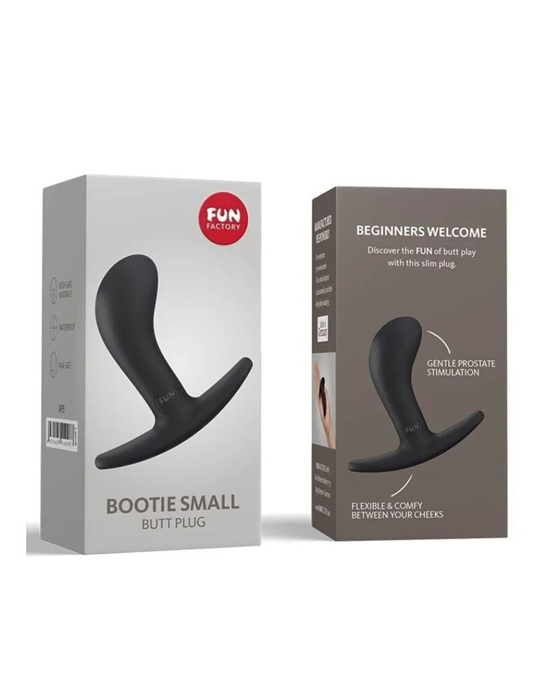 Gracias a su superficie suave y aterciopelada, BOOTIE SMALL es el juguete perfecto para principiantes y conocedores para cumplir sus fantasías anales. La acertada combinación de alta flexibilidad y necesaria dureza hacen de este atractivo plug un juguete altamente erótico. El BOOTIE SMALL despierta fantasías y está diseñado para que un principiante pueda calentarse con esta nueva y emocionante estimulación de forma lenta pero segura. Pero los usuarios experimentados también se divertirán con BOOTIE SMALL de FUN FACTORY, especialmente cuando usen el pequeño juguete para una estimulación adicional durante el acto sexual. En el extremo superior, el BOOTIE SMALL es redondeado, lo que lo hace particularmente fácil de insertar. El otro extremo es lo suficientemente ancho para evitar que el pequeño juguete se introduzca demasiado en el ano por accidente. Su forma asegura que se mantenga en su lugar por sí mismo. y tal vez incluso por un período de tiempo más largo. ¡Como desées!