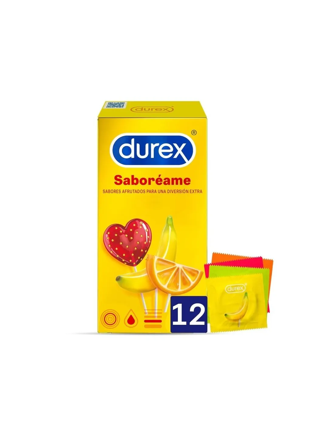 Durex Saboréame son preservativos con sabores afrutados para una diversión extra. Preservativos con aromas y sabores a: fresa, plátano, naranja y manzana. Los preservativos Durex Saboréame, con sus colores y sabores, añaden un toque de diversión a tus relaciones.