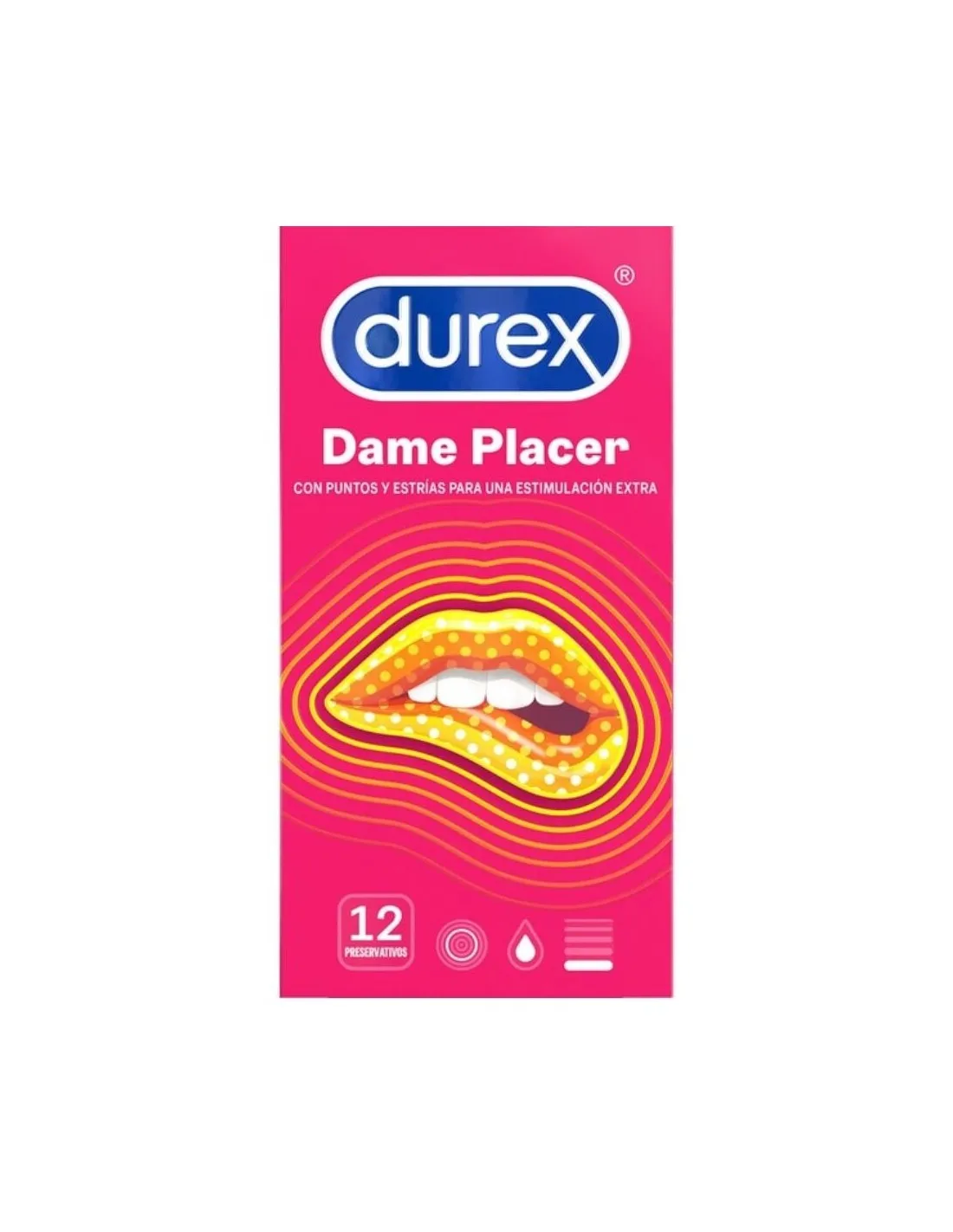 Durex Dame Placer son preservativos que suben la temperatura entre las sábanas. Sus puntos y estrías crean una experiencia sexual más intensa para ti y tu pareja.